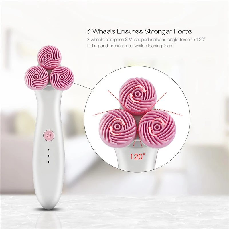 SALE Sonic Facial Cleaner Brush Deep Cleaning 3 Wheels 3D Cleansing Brush Electric Face Massager Scrubbe